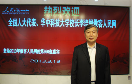 伟德国际1946bv官网北京3月13日电 (记者 熊旭)下午,全国人大代表、华中科技大学校长李培根院士做客伟德国际1946bv官网教育频道,他认为,教育方针是使受教育者在德育、智育、体育几方面得到全面发展,而目前教育教学有点像批量生产,不自觉地把学生当成是生产线上的产品,这对创新人才培养是不利的。