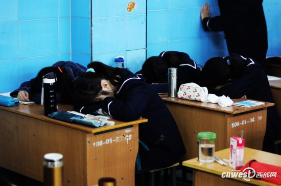 早读过后,高三教室里学生趴在桌子上小憩一会儿。