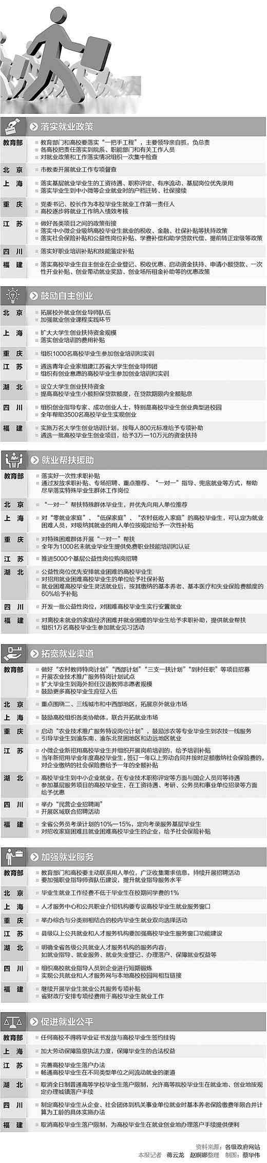面对复杂的就业形势,各级政府多措并举,全力以赴;不少高校也在想法子、找路子。毕业生在努力,政府、学校也在发挥自己的作用。
