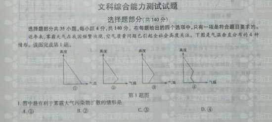 文科综合 浙江 广东 安徽卷 湖南清晰版 江西 重庆 更多>>
