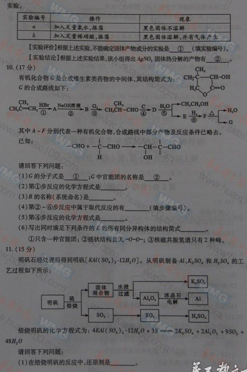 2013高考四川理科综合试题及答案(清晰版)【10】