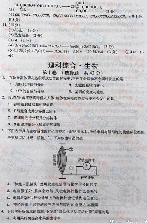 2013高考四川理科综合试题及答案(清晰版)【12】