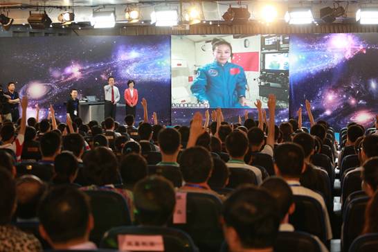 看,同学们的手举得多高,王老师,我想问你一个问题:太空你们是怎么生活的?