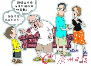 另一方面,新科技对家庭关系尤其是婆媳关系的冲击之大,出乎新手父母们的意料。有位广州妈妈在微群里诉苦:宝宝发热38℃,精神状态正常,妈妈便按照儿科医生微信的指点,不带宝宝去医院“扎堆”,也不吃退烧药,只让孩子多喝水,靠温水擦浴来降温。但爷爷奶奶为带孩子去医院,不惜以死相逼。虽然在老公的支持下,这位妈妈坚持自己的方案,让宝宝成功降温,但事发3天后,公公婆婆仍不肯和儿媳说话。