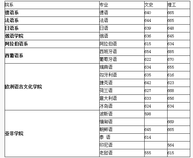 北京外国语大学2013北京市各专业录取分数线