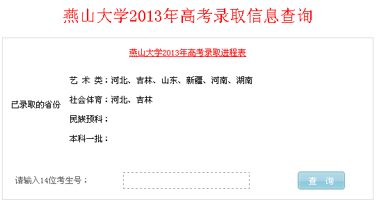 燕山大学2013年高考录取结果查询系统