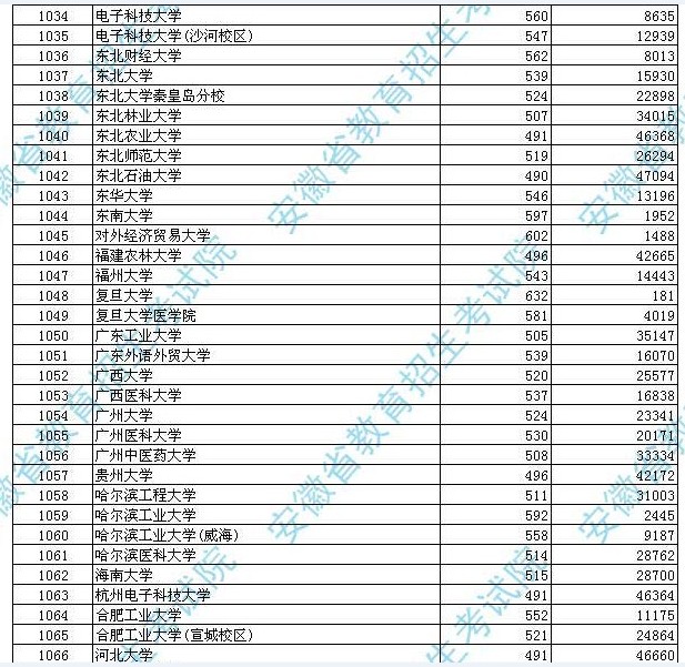安徽省2013年第一批本科院校投档分数及名次(理工)【2】