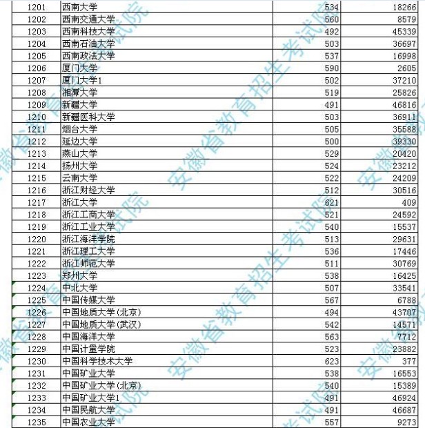 安徽省2013年第一批本科院校投档分数及名次(理工)【7】
