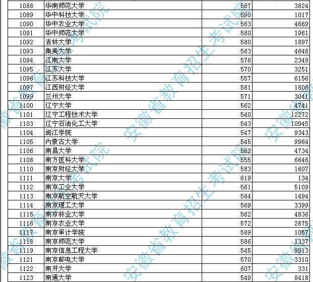 安徽省2013年第一批本科院校投档分数及名次(文史)【3】