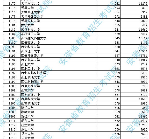 安徽省2013年第一批本科院校投档分数及名次(文史)【5】