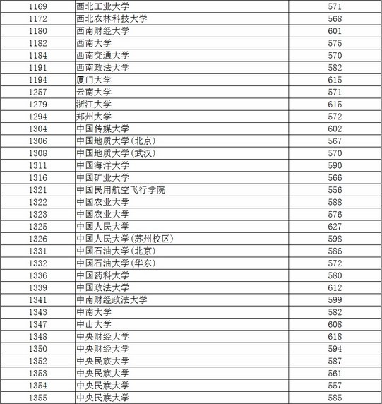辽宁省2013年一批本科A段最低录取分数线(文)【3】