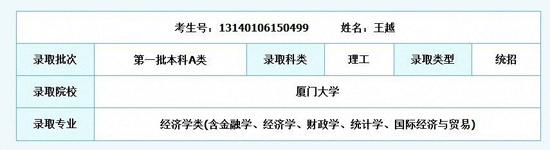 7月15日,经网上查询得知,王越已被厦门大学正式录取。本网记者致电厦门大学招生办,相关负责人表示,今年厦大确实在山西招录了一个叫王越的考生,学校尚未知悉其罹患白血病的相关信息,若情况属实,厦大将会启动招录应急预案,先调查该生的相关情况,视调查结果采取相应处理办法。