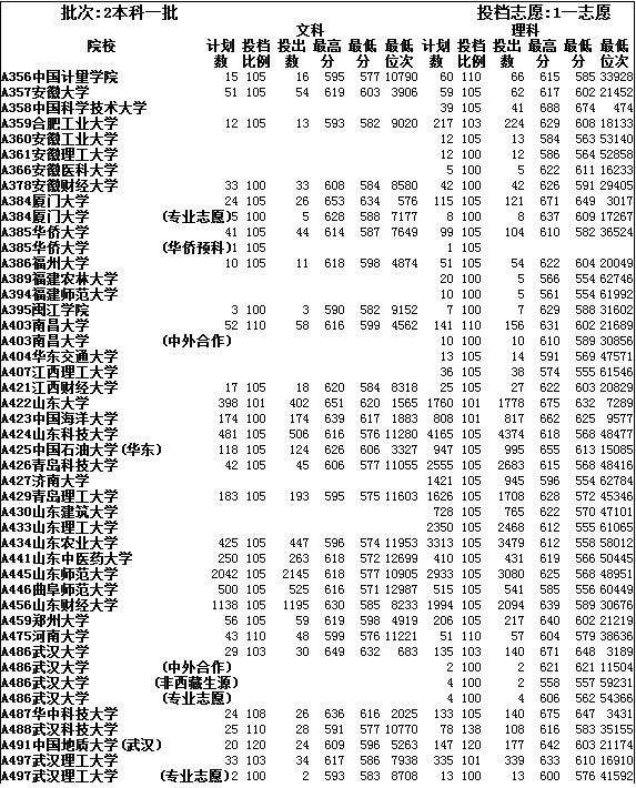 ·湖北第三批本科院校 投档线昨晚公布