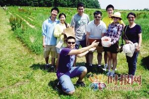 刘赞(右二)与俱乐部同学们在郊区农场定期聚会,在休闲的同时交流学习经验