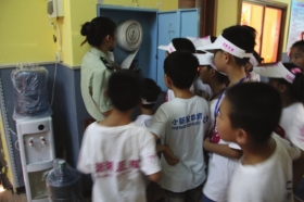 小报童们参观了消防车、试着穿消防服、试着疏散到逃生帐篷。一些小报童胆子小,站在车上不愿尝试,最后在消防员的指导下,终于学会了如何操作。