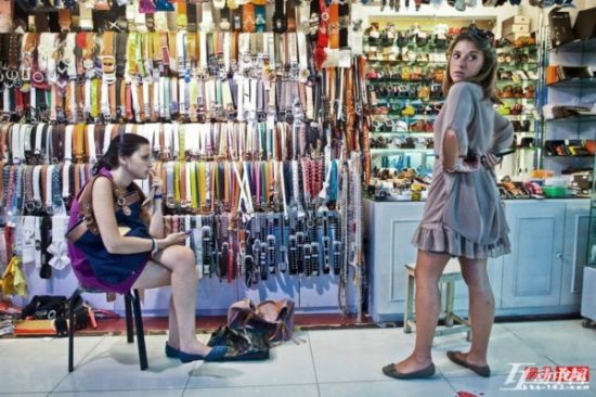 在一家小商场里,意大利留学生美琳正在试腰带,同伴劳拉坐在一旁等待。她们半天的购物成果是:一件连衣裙、一条腰带、一个化妆包、一打发带,以及做了一次美甲,一共花了200多元。