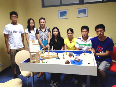 9月1日下午,沙盘游戏室传来阵阵笑声,打破了周日教学楼里的寂静,学校电视台团队在心理沙盘游戏室举行了体验活动。心理咨询中心高兰老师向同学们解释了心理沙盘的基本理论和构成形式,并将所有同学分为两组。鲁丹凤老师宣布了小组沙盘游戏的规则。在沙盘游戏过程中,第一轮以喜好出发、各自为政摆放沙具,第二轮自然融入、同心协力、共同完成梦想,实现了整个团队的融合和协作。两组成员都经历了建构、调整和完善的阶段。随后,小组成员分享了自己在沙盘游戏中的感受,两位心理指导老师不失时机地对各小组的整体活动做了点评。游戏结束后,同学们纷纷表示受益匪浅,卢卓君同学说:“第一次来做心理沙盘游戏,体会到了团队协作的力量。”张欣同学说:“整个游戏过程让人感觉轻松愉快,通过游戏,使我们领悟到了沟通、理解、和谐,对一个团队的建设和发展是多么重要。”