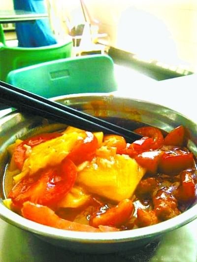 菠萝炒番茄:据说是因为非典时期不能吃鸡,不能吃鸡蛋而开发的