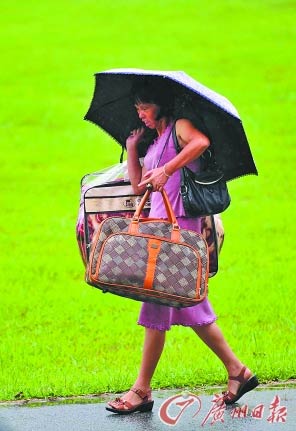 9月4日,广东五邑大学正式迎来2013级本科新生入学,一位母亲把拎行李的活一个人全给包了。