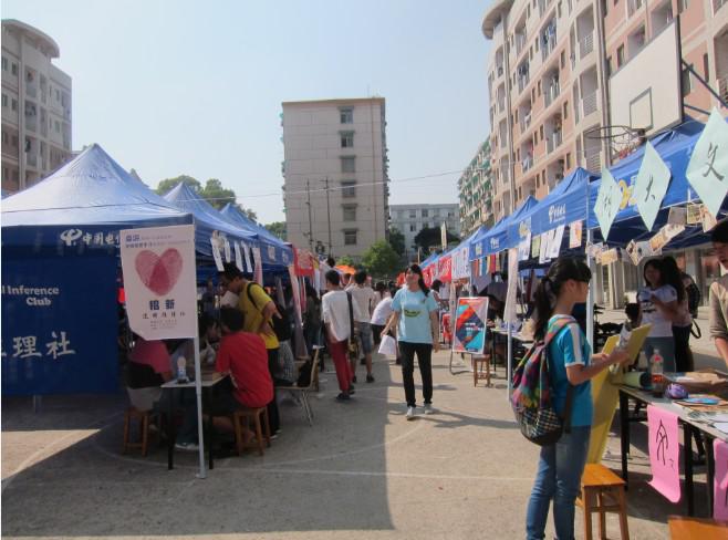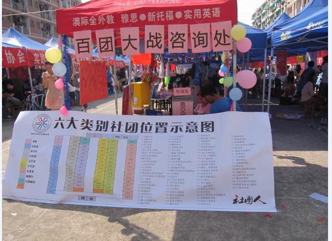 10月12日,天马学生公寓二区篮球场热闹非凡。一年一度的“百团大战”强力来袭。涵盖公益、体育、文化、文艺、社科、学术等一百多个社团正进行着紧锣密鼓的“抢人运动”。招新活动将持续到10月13日。即使是中午的炎炎烈日,也丝毫没有影响招新团队和新生们的热情,各个社团的宣传棚下,都坐着前来咨询、报名的新生和耐心回答的招新负责人。