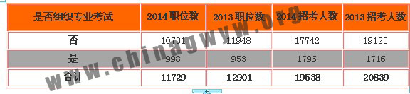 是否组织专业考试职位2013年-2014年职位对比一览表
