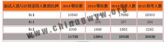 2013-2014年国家公务员考试面试人选与计划录用人数的确定比例