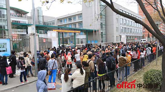 11月24日上午9时,2014年度中央国家机关录用公共科目笔试鸣锣开考,本次考试涵盖了全国31个省(区、市),报名审核通过152万人将参与本次考试,有150余万考生参与本次“考碗”,规模之大、人数之多、竞争激烈度创历史新高。清晨八点的北京,天空中阴雾迷蒙,气温微寒,此刻,考生们已经携带所有考具早早来到考场外等候,更值得关注的是,几乎所有人都在翻看手里的备考资料,不让一分一秒匆匆虚度。