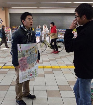 12月15日,志愿者在东京武藏境车站前向行人呼吁为白血病人群献爱心。