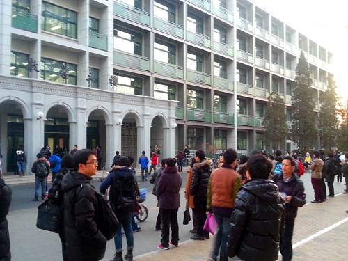 等待考生出来的人群
