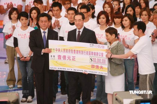 四川汶川地震,邵逸夫爵士夫妇捐款1亿港币,四川雅安地震又捐款8000万人民币。