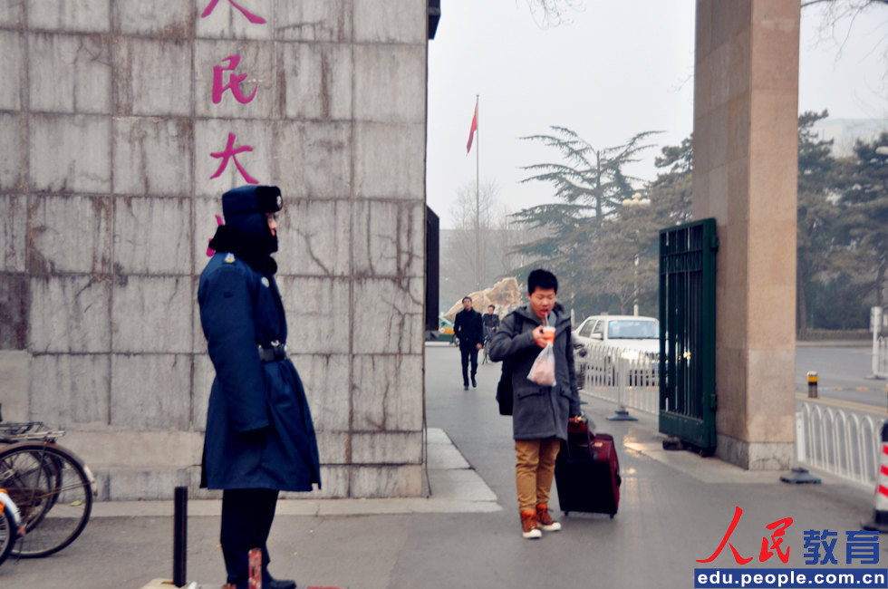 王雷是中国人民大学大三的学生,他说虽然今天是结束期末考的第二天,但寝室里只剩他一个人了。大多数的学生买了当天的车票,匆匆回家。今天他收拾好行李赶往火车站时,天才蒙蒙亮,他一手拖着行李箱,一手拿着早饭,匆匆赶往西站。