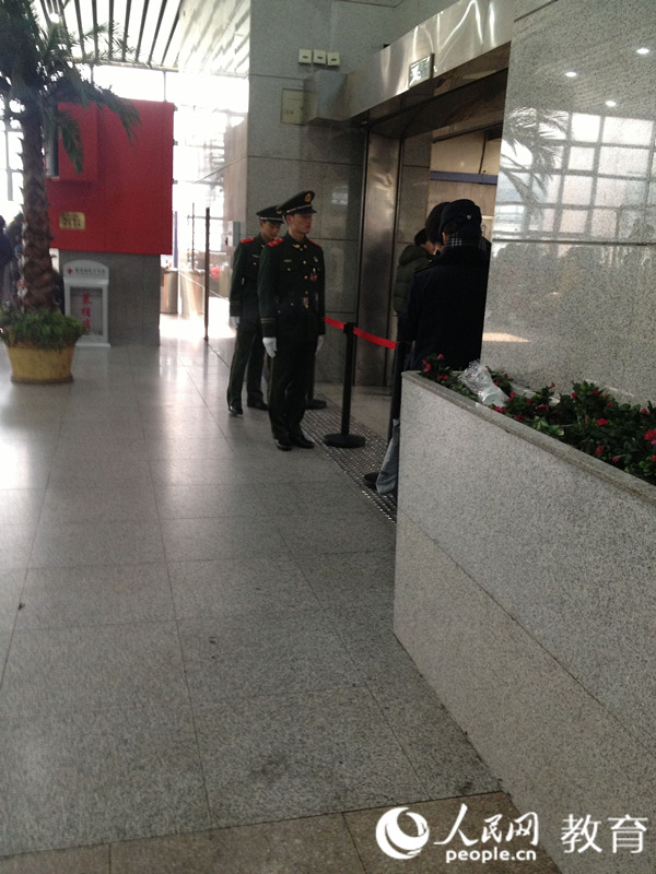 车站口站岗的解放军,他们肯定也想回家过年,但为了确保乘客安全乘车,他们毅然坚守岗位站岗放哨。(王文博摄)