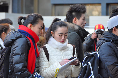 图为走出考场的表演系考生。