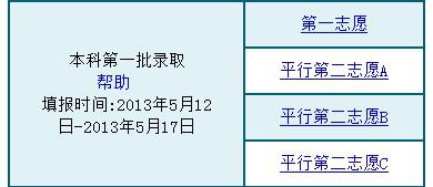 从上图可以看出2013年志愿填报表格在一志愿只有一所学校可以报考,这也是我们所说的有序志愿。2014年志愿填报表格多了一个一志愿,报考模式转变为平行志愿。这两种志愿模式下的录取规则有着巨大的差别,简而言之,在有序志愿下每位考生去所报考的院校按照成绩进行排队,学校根据招生计划从高分依次往下进行录取。在平行志愿下,所有的考生排成一列队伍,每一个学生都有唯一的排名,排到考生的时候先看他的A志愿学校,如果被提档则不会再看B志愿,如果没有被提档则继续看B志愿学校。总结起来就是有序志愿,志愿优先,遵循分数,平行志愿,分数优先,遵循志愿。