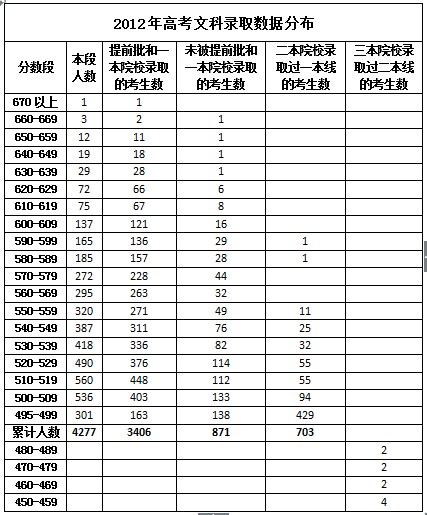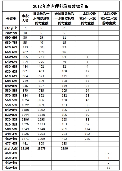 2013年高考录取数据教育部将于2014年4月中下旬发布,所以选用2012年的数据进行说明。
