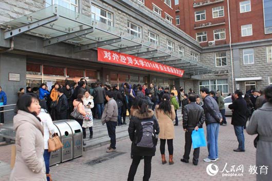 早上七点开始就有家长和学生陆陆续续来到了考场外