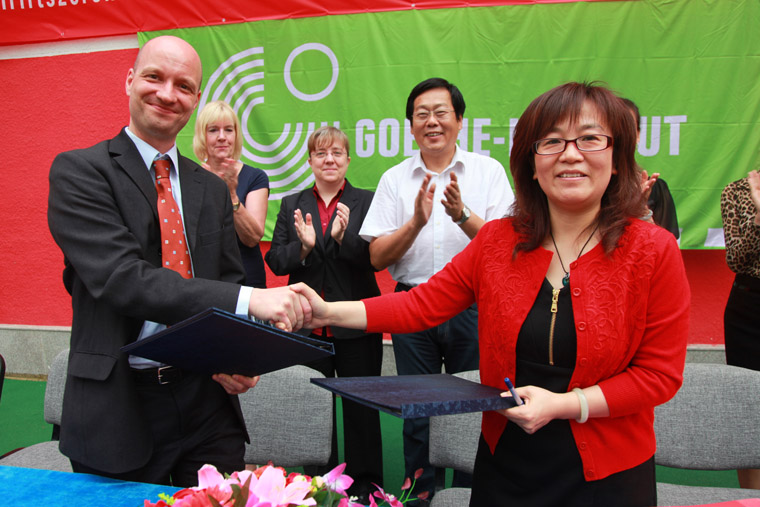 2012年9月24日,人大附中实验小学与德国文化中心歌德学院“歌德课堂”项目合作签约,学校成为“歌德课堂”合作学校。(海