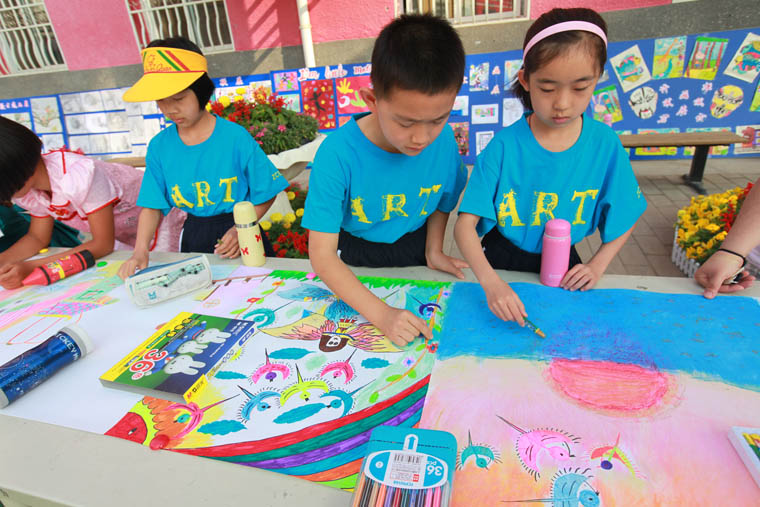 2012年5月31日,人大附中实验小学学生在艺术节上现场绘画