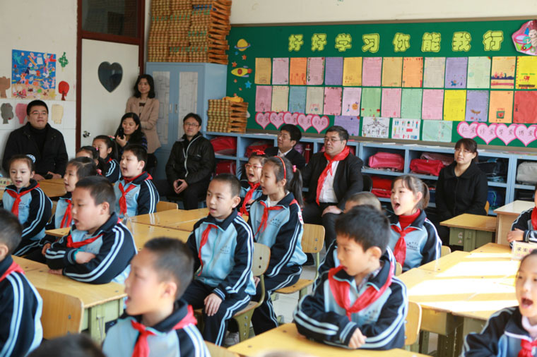 2012年3月26日,人大常委、民进中央副主席朱永新教师走进首师大附小,和二年级小同学一起上课