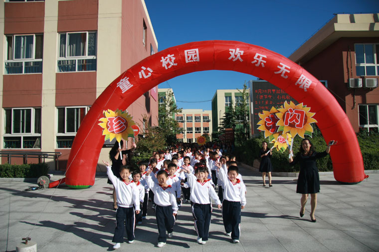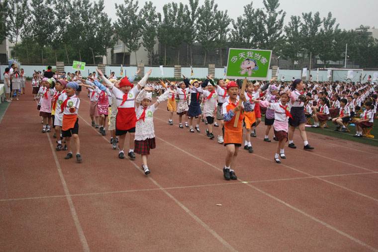 2012年9月29日,首师附小举行体育节活动。此图为:班级入场式以及学生自信的笑容