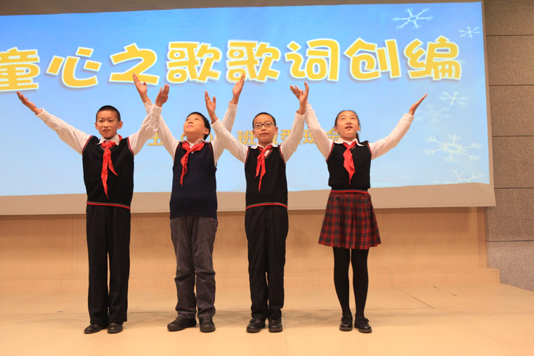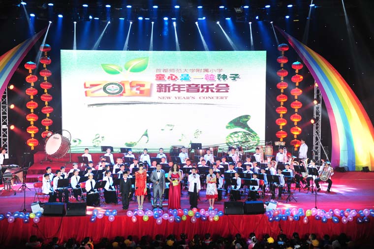 每一年首师附小都举办新年音乐会,为学生搭建自我展示的舞台。此图为:2012年12月31日举行的《童心是一粒种子》童心音乐