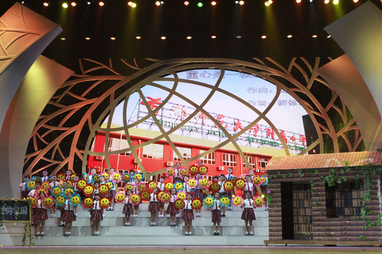 2013年4月21日,首师大附小合唱团参加“地球转动需要爱”大型公益演出。此图为:现场表演我校童心之歌《童心是一粒种子》