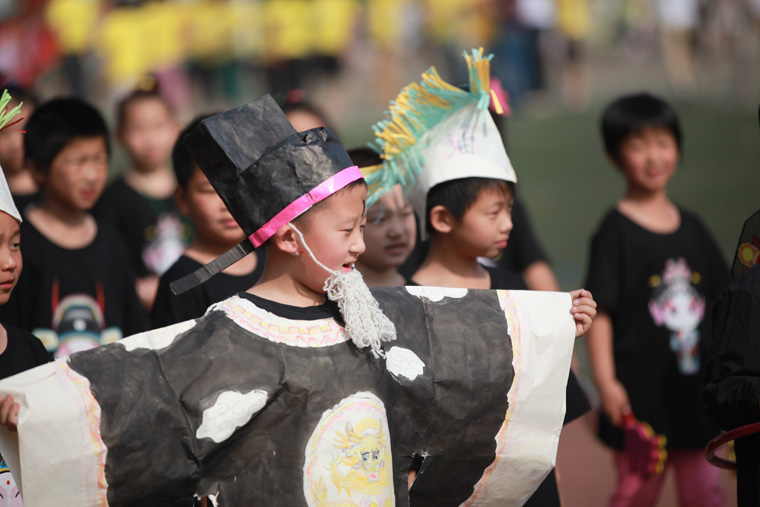 2013年6月1日,首师附小举行“童心欢乐谷,穿越大游行”六一庆祝活动。此图为:学生扮演的“包拯包大人”