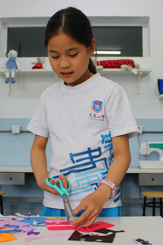 听障的学生共分为6个小组,每组3—4人。在老师的带领下,与普通学生在一起,共同制作北京特色小吃、学习泡功夫茶、制作纸花、制作布艺卡套和制作动物泥塑。“我挺喜欢来这里上课的,在这里不仅能学到东西,还能遇到很多小伙伴。”北京市东城特教学校四年级的听障学生刘帅一字一句开心地说。