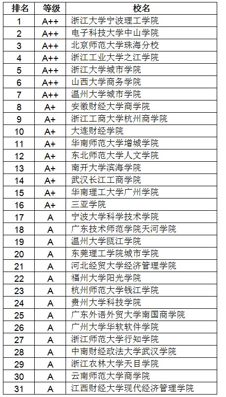 2014中国独立学院管理学A等学校排行榜