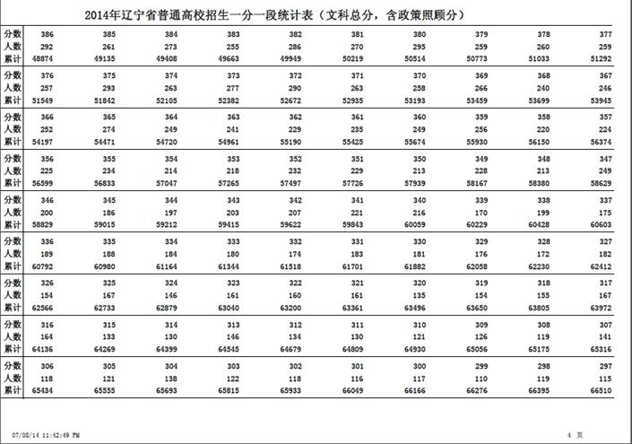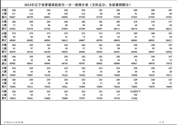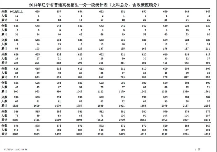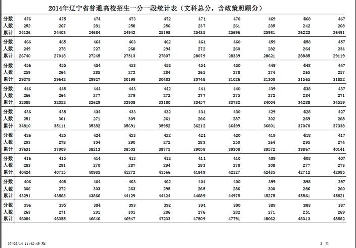 关于公布辽宁省2014年高考成绩一分一段统计表的说明