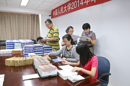 在开放日活动中,人民大学介绍了高招录取过程,并以2014年已完成的录取省份实例数据详细演示了调档程序、专业录取步骤等决策和软件操作过程,以实际案例讲解了录取、退档、专业排序等招生规则,介绍了“分数线是怎么产生的”。在了解基本录取规则后,社会监督员和媒体前往录取现场,实地参观和了解录取进程。整个开放日活动中,除涉及考生个人信息及在录阶段性保密信息外,人民大学对参观人提出的问题均进行了详细解答。此外,人民大学还介绍了通知书印制和发放流程,展示了通知书寄发现场。