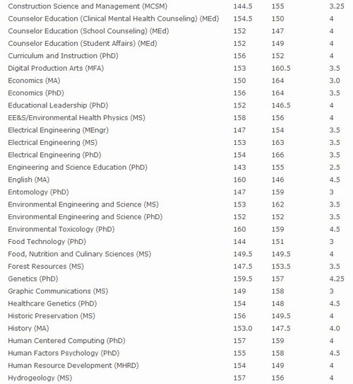 又到了2015年秋季入学申请季了,很多同学在准备最后的GRE或GMAT的冲刺考试,为了更好的给同学们一个参照,陈老师特别为大家总结了2014入学季美国排名前50的大学按不同专业划分所要求的GRE及GMAT单项及写作平均要求的分数。希望大家有个自我评估及参考,为确定目标院校及专业做好充足的准备。