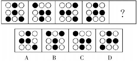 例3:从所给的四个选项中,选择最合适的一个填入问号处,使之呈现一定的规律性:
