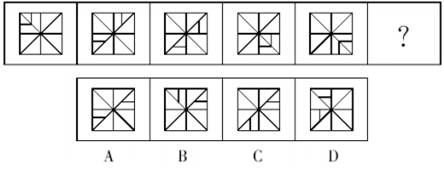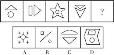 例2:从所给的四个选项中,选择最合适的一个填入问号处,使之呈现一定的规律性: